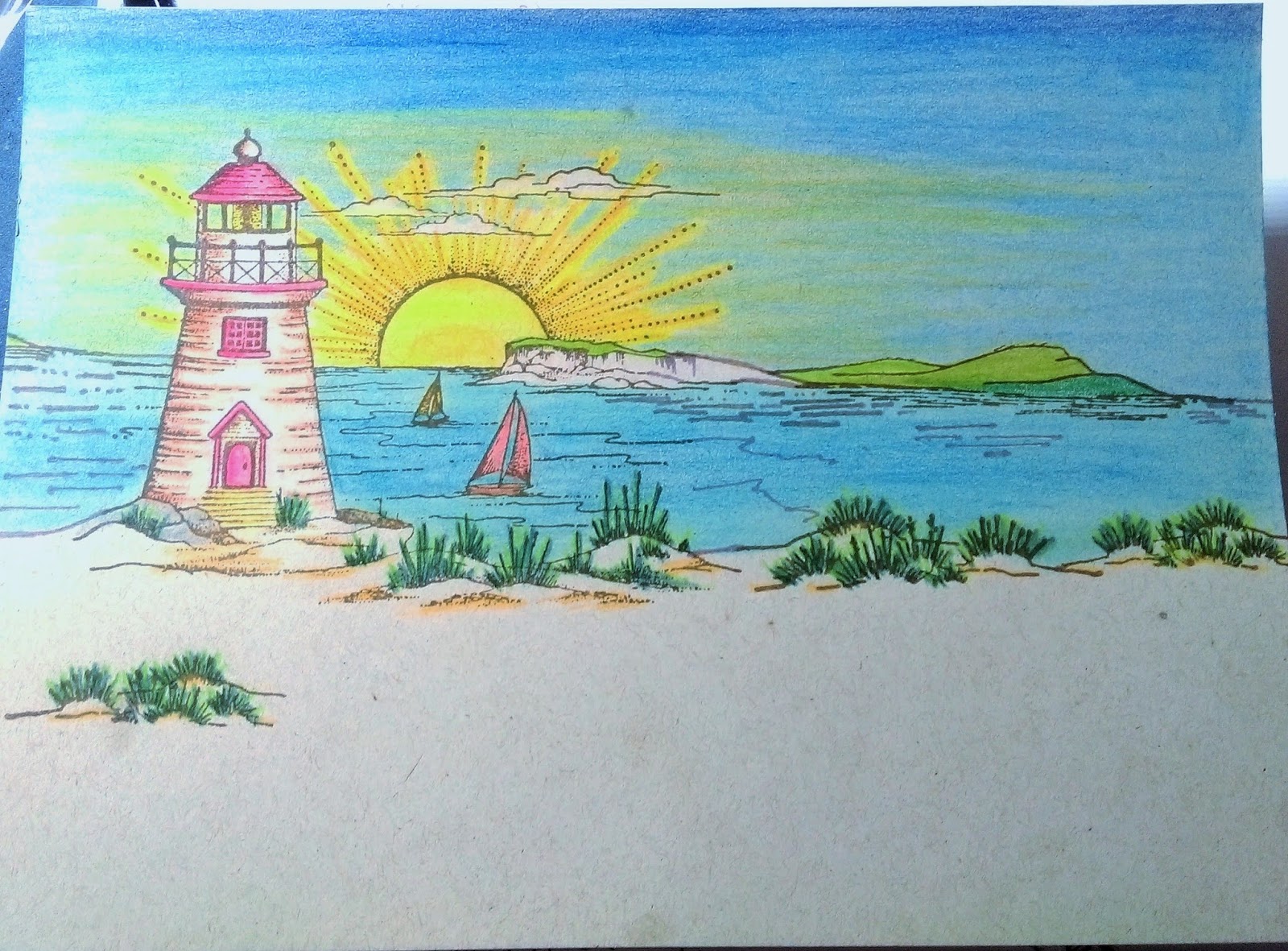 I began with a piece of white card. I put three contrasting colours of DOs onto my glass mat and spritzed them with water, then dragged the card over them. The colours blend themselves together on the card.